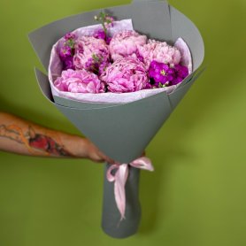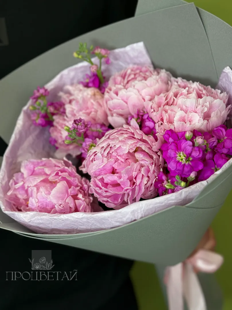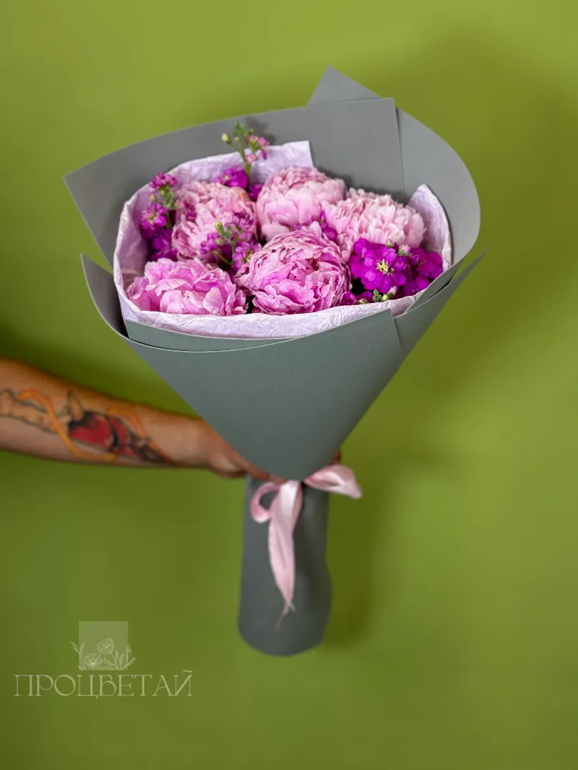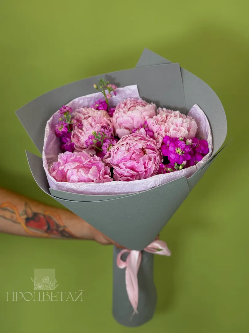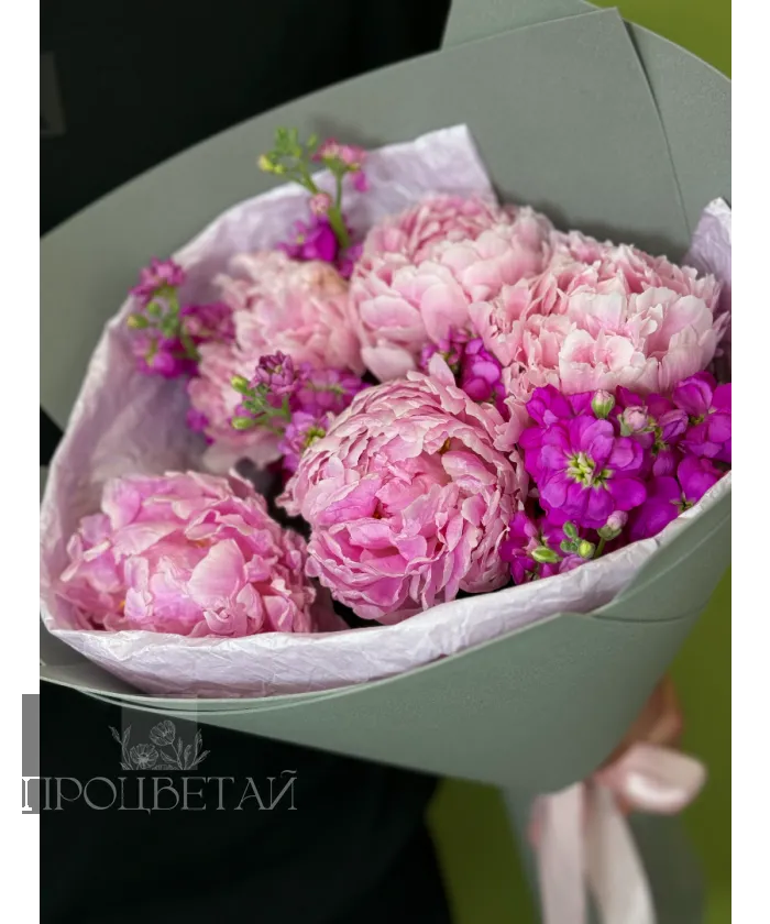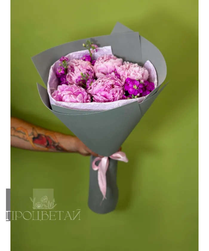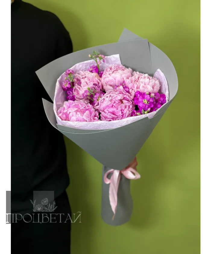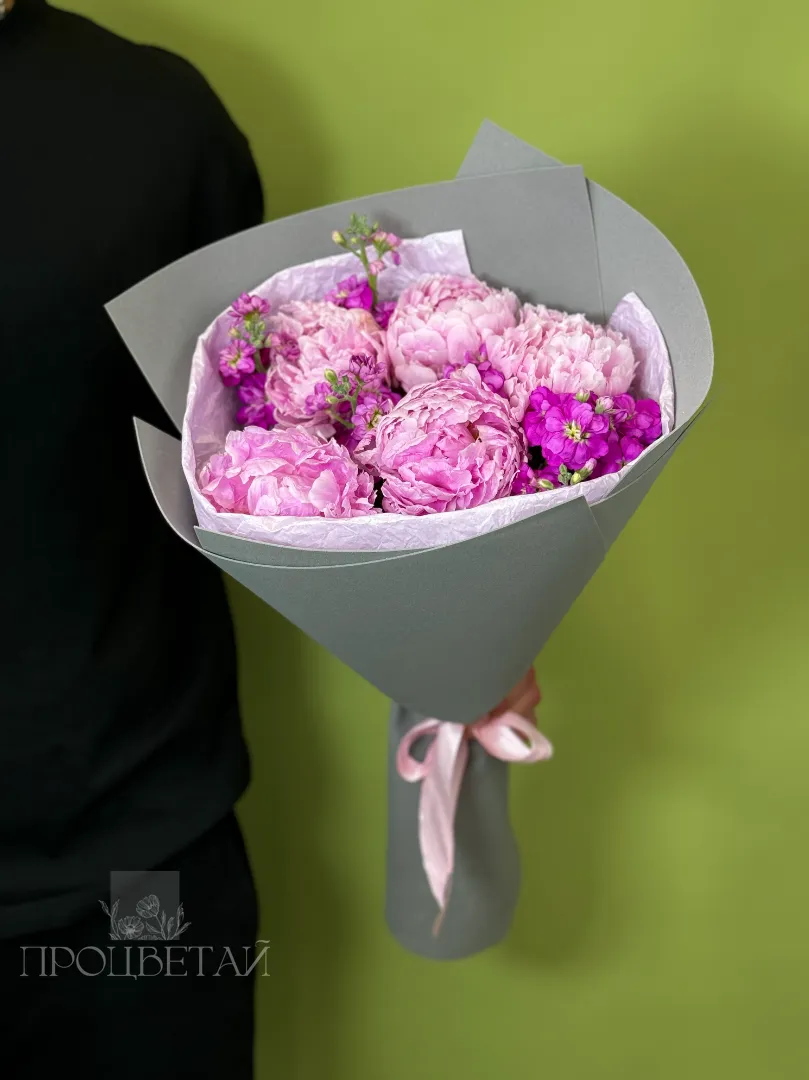 Букет с пионами и маттиолой